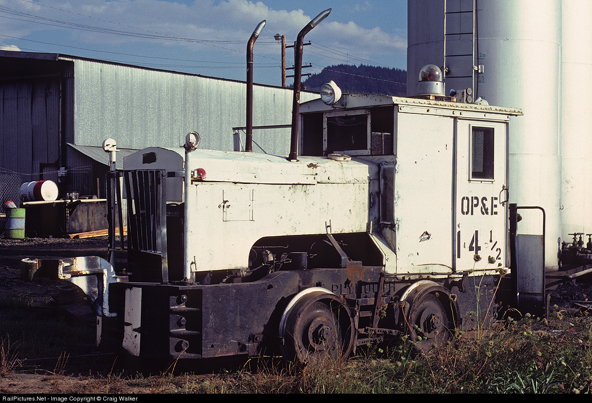 This engine was built in May 1930 (c/n 3476) for Garfield & Company (Plymouth dealership), San Francisco, CA. It then went to Unemployed Exchange Association, San Francisco, CA, and then to Feather River Pine Mills #A. After that, it was owned by Feather River Railway, who sold it to OP&E in 1968 as their #9, later renumbered to OP&E 14½.
