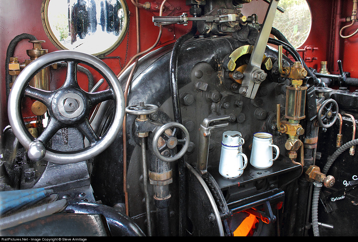 | Have you ever wondered what all those pipes, handles, levers and general copper-work and ironmongery are in the cab of a Victorian steam locomotive? All I can tell you is that it's great for keeping your billy can of tea warm! |