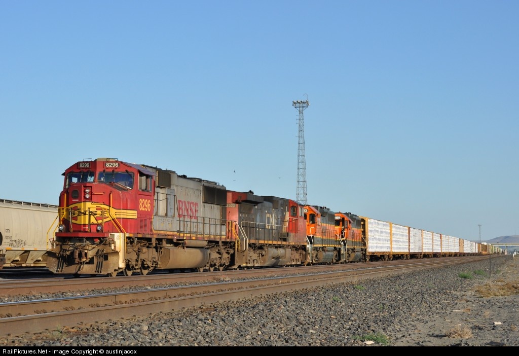 RailPictures.Net Photo: BNSF 8296 Burlington Northern Santa Fe EMD SD75I at Pasco, Washington by austinjacox