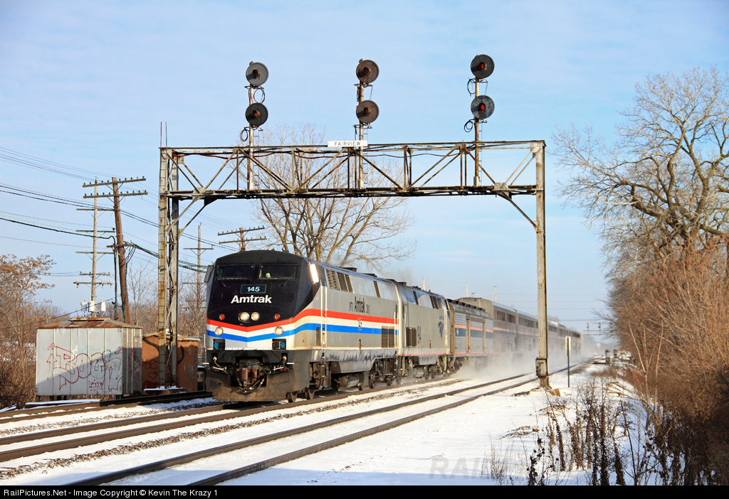 RailPictures.Net Photo: AMTK 145 Amtrak GE P42DC at Downers Grove, Illinois by Kevin The Krazy 1