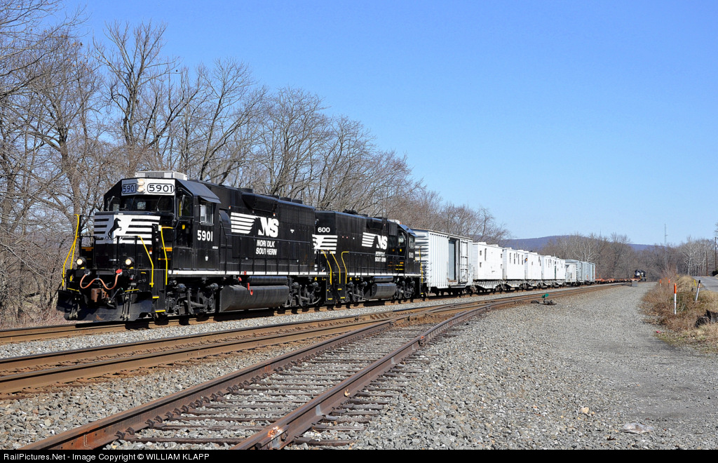 | Westbound with 22 camp cars from Newport , Pa. Notice NS 5900 is bringing up the rear of train.