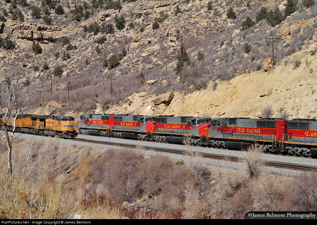 RailPictures.Net Photo: UP 6966 & UR 5001 Utah Railway Company EMD/MK50-3 at Price Canyon, Utah by James Belmont