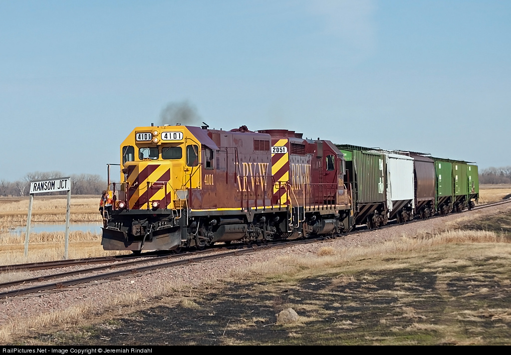 After departing Breckenridge, MN, the RRVW 4101 had a decent train. After some work along the line, they parked a majority of their train on the main, made a left turn and headed down the 4th subdivision. They've dropped cars at Sheldon, ND and are in the process of leaving the 4th sub and entering CP's southern transcon just south of Enderlin at Ransom Jct. Quite the fun chase indeed.