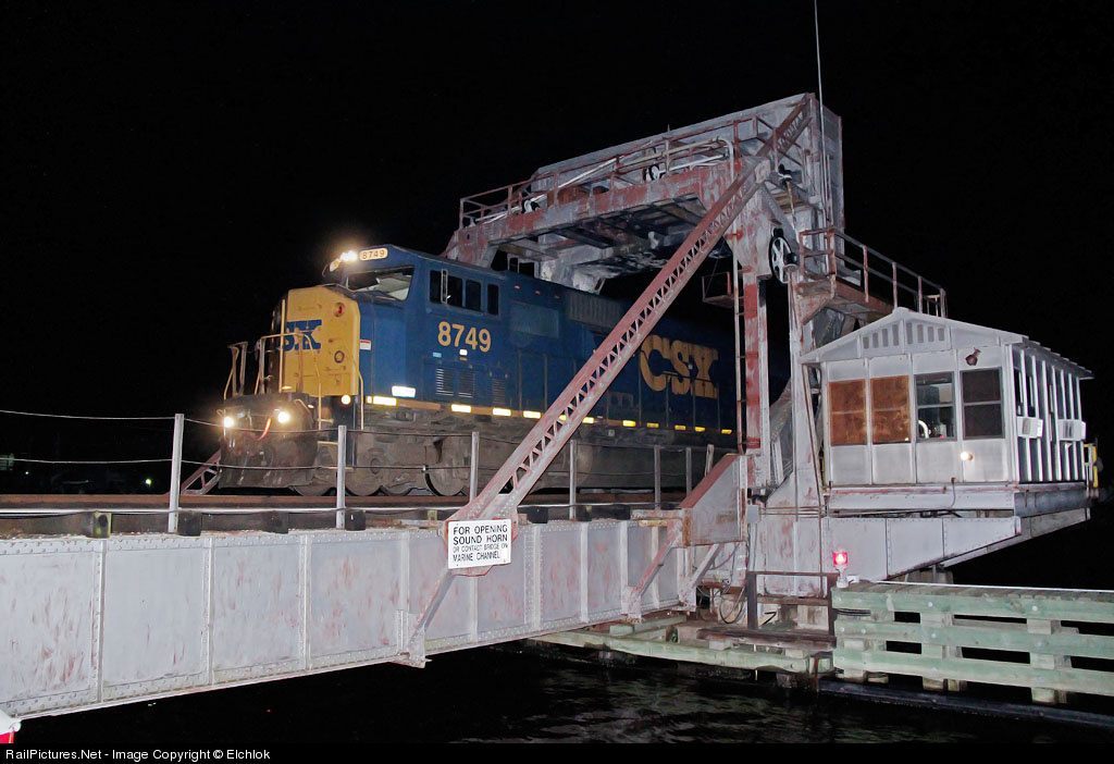 | One of the 35 SD60Is CSX owns, CSXT 8749, leads CSX train Q456 across McGirts Creek Bridge at a quarter past nine. |