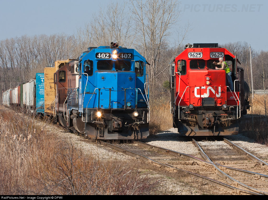 The ELS Green Bay turn passes the CN GenCorp job on its way into Green Bay. The crews exchange pleasantries in the passing.