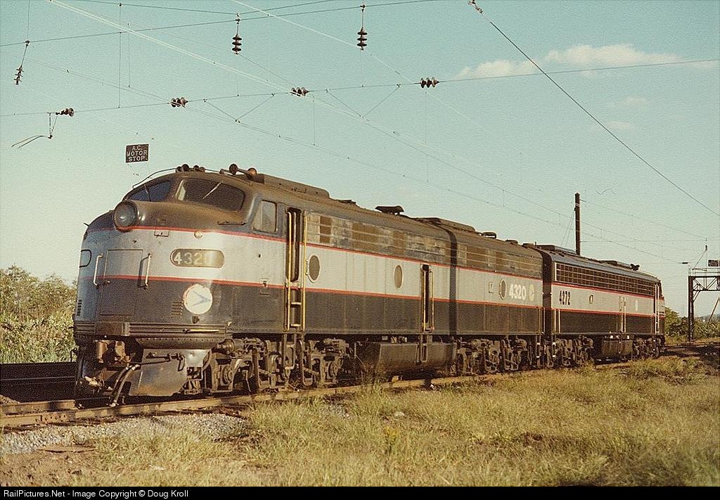 E-8's #4320 & 4272 wait at the electric-to-diesel change point just south of the station.