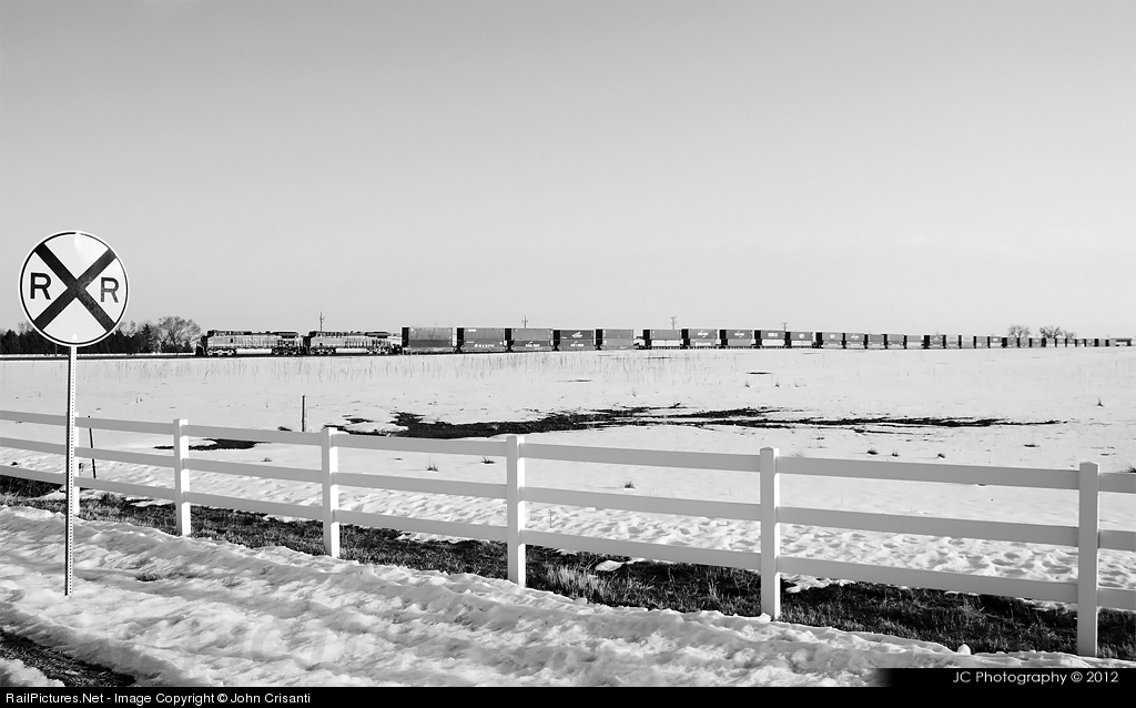 An Heritage 2 C44-9W and ES44C4 lead the weekly Denver, CO to Tacoma, WA Stack Train that is seen waiting for the second southbound to show up at Longs Peak.