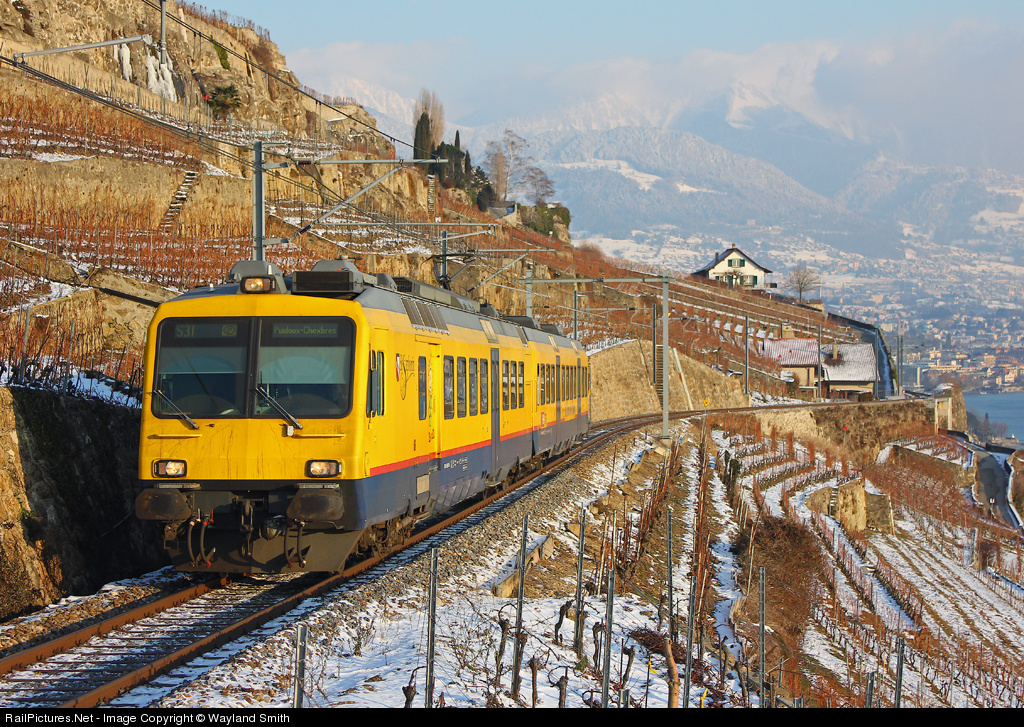 This RBDe Class 560 unit climbs past the frosty vineyards of Lake Geneva towards Chexbres.