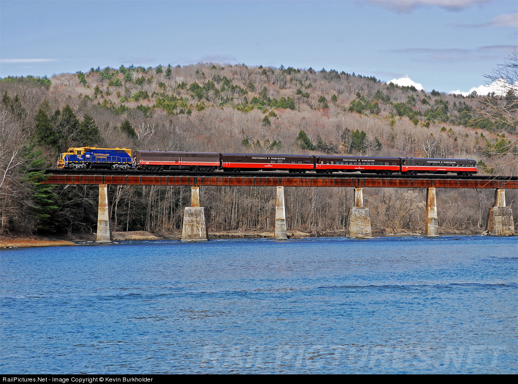 New England Central Railroad, the Providence & Worcester and the Vermont Rail System officials were joined by state legislators and transportation committee members on an office car special that ran from Montpelier Jct., VT to Worcester, MA, utilizing NECR GP38 3857, P&W E9B 668, "Connecticut" (PW 3840), "Massachusetts" (PW 4587) and the "New Englander" round-end observation (PW 90). The OCS-1 glides across the White River bridge in West Hartford, VT. Be sure to check out more photos at http://steelwheelsphotography.com