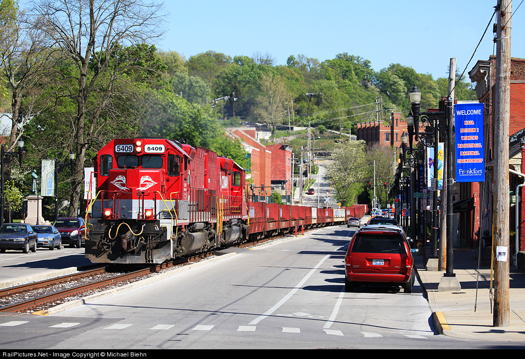 Heading west (railroad north) through the streets of Kentucky's capital.