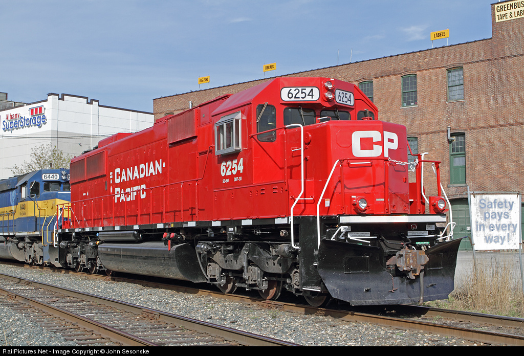 One of the recently released CP SD60 rebuilds holds at Green St waiting for space at the unloading area in Kenwood Yard. CP 6254 is the former SOO 6054, built in Oct 1989 and delivered in SOO candy apple red. It still retained its original paint upon rebuild by CAD Railway Services (Lachine, QC) during Feb and March 2012.