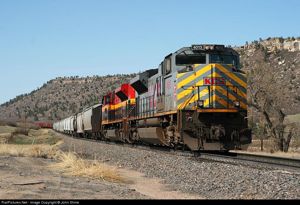 | A pair of KCS SD70ACe's, 4013 and 4102 pay a visit to Colorado as they power a Denver to Amarillo freight South over the Joint Line |