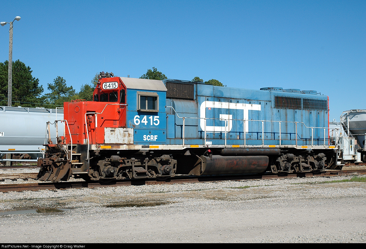 Soaking up the October sun (and blending in with the sky) in Floyd, South Carolina, is South Carolina Central GP40-2 6415. As evidenced by this engine's markings, this is a former Grand Trunk Western diesel (GTW 6415), who obtained it from the Detroit Toledo & Ohio (DT&I 415). This engine was owned by RMPX before arriving at the SCRF, and RailAmerica (SCRF's parent company) transferred it to the CF&E in Lima, OH in March 2012.