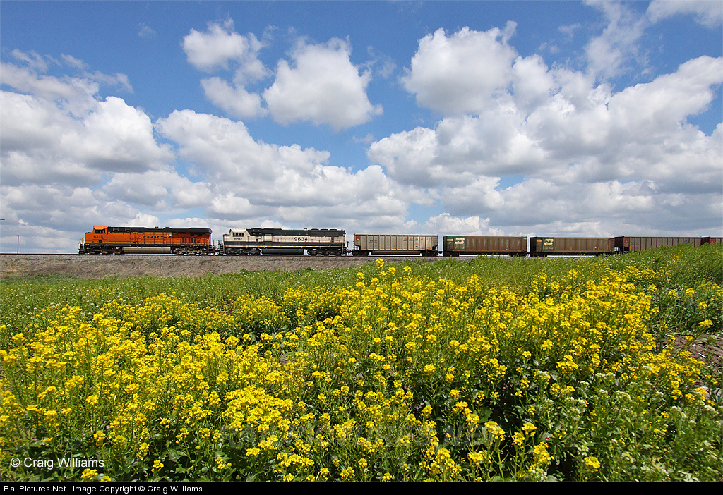 A West Olive, MI, to North Antelope Mine, WY, rolls west thru southern Iowa. The train is approaching CP 2502, the new crossovers between Fairfield and Lockridge that was put in to help Amtrak move around the coal trains on this route and the long sections of ABS.