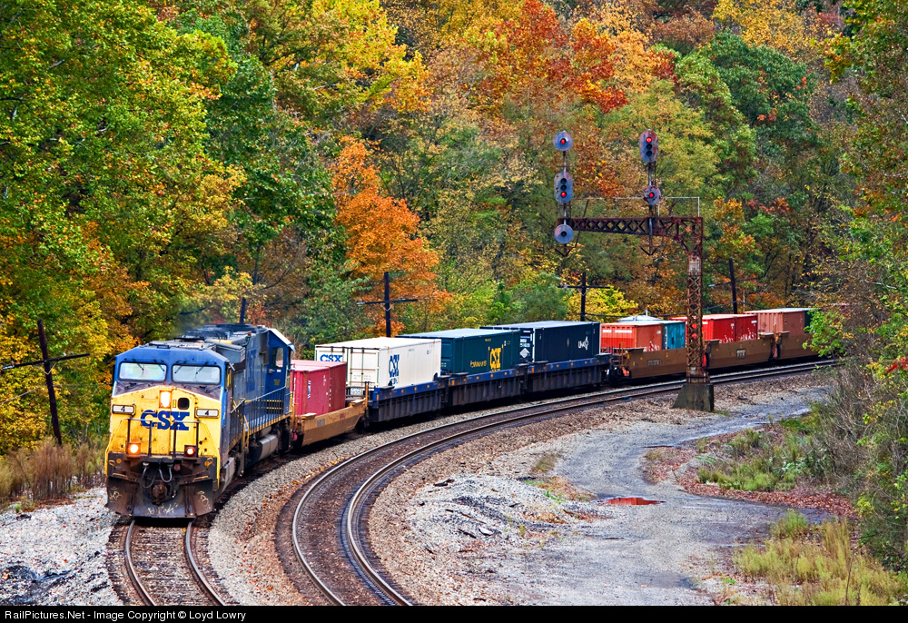CSXT 4 leads Q135 through Hilldale on a rainy fall afternoon. After the initial 3 unit purchase (9100, 9101, 9102) for testing by CSX in the June of 1994, former 9103 was the first unit produced for purchase order 1853CSX in the fall of 1994. The initial order totaled 36 units, and thus began the AC revolution on CSX which dominates road power today.