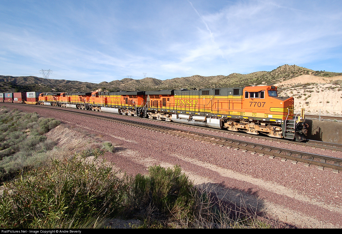 RailPictures.Net Photo: BNSF 7707 Burlington Northern Santa Fe GE ES44DC at Cajon Pass, California by Andre Beverly