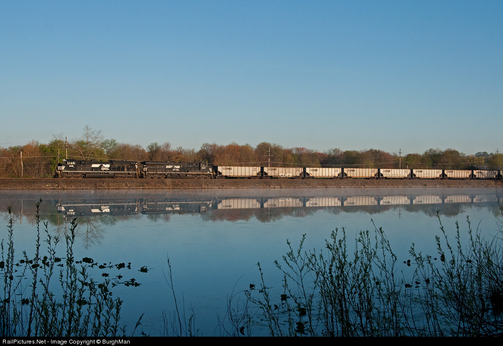 Empty hopper train 573 rolls thru New Galilee behind NS 1008 and NS 8085.