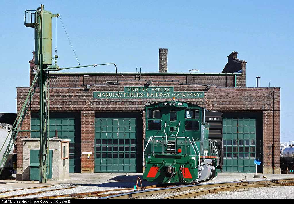 Looking a lot like the Manufacturers Railway from before, FTRL SW1500 #257 rests between shifts at the ancient enginehouse, which they are now leasing. Even though the paint is similar to the old Manny, it still isn't the same.