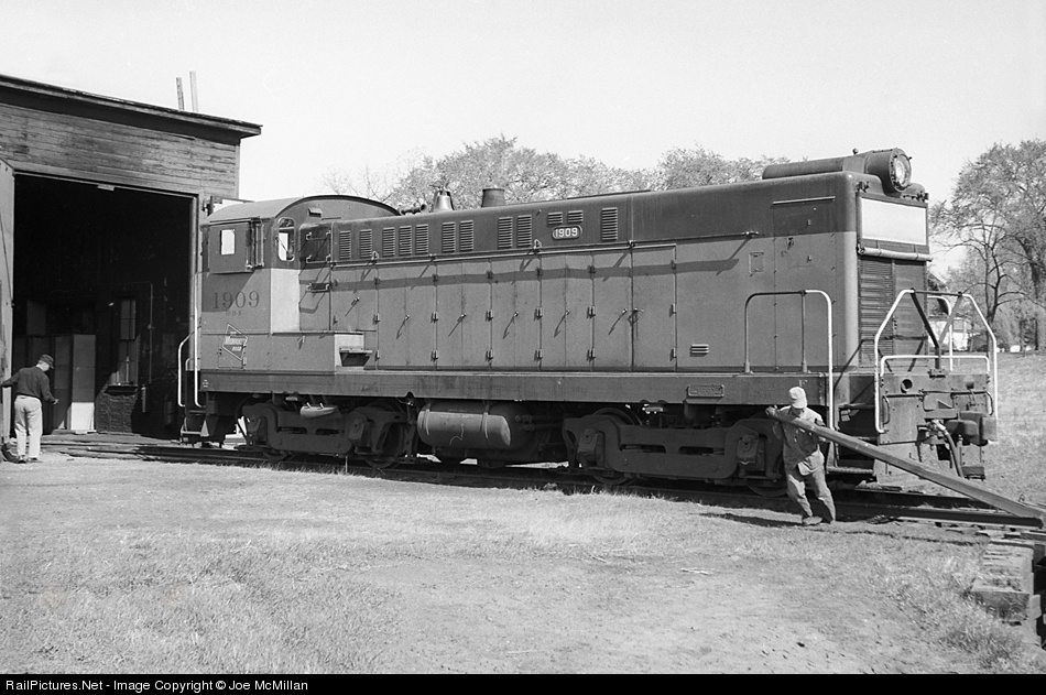 Putting away yard switcher 1909 in the single-stall enginehouse at Faribault.