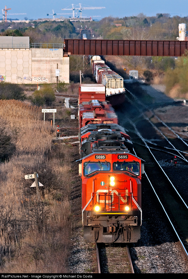 | The train of doom has one more mile remaining before arriving at Mac Yard, here they are seen crossing over from the North track to York 1 at Snider with 9,700+ ft. Earlier in the day CN 316 caused havoc on the Bala Sub around Medora with a pulled drawbar, this caused a backlog of freights including which VIA No. 2 was stuck behind and had to assist by uncoupling their lead unit to help move the B/O'd car into the siding.