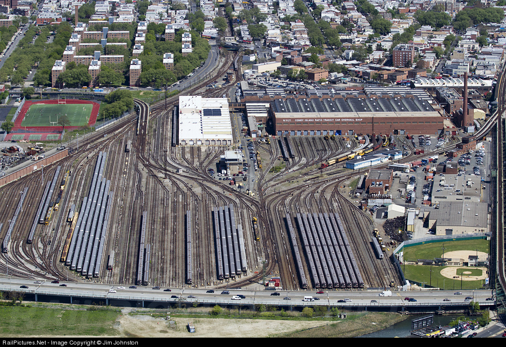 The Coney Island Yard is the largest rapid transit yard in the world. The complex covers nearly 75 acres and performs heavy maintenance and overhaul on many of the subway cars in New York City.