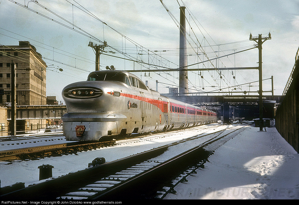 RailPictures.Net Photo: PRR 1000 Pennsylvania Railroad GM EMD LWT12 AeroTrain at Newark, New Jersey by John Dziobko www.godfatherrails.com