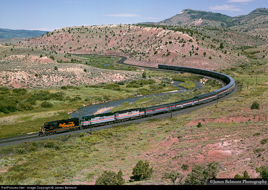 Amtrak's California Zephyr train #6 drifts downgrade along the Price River approaching Kyune.
