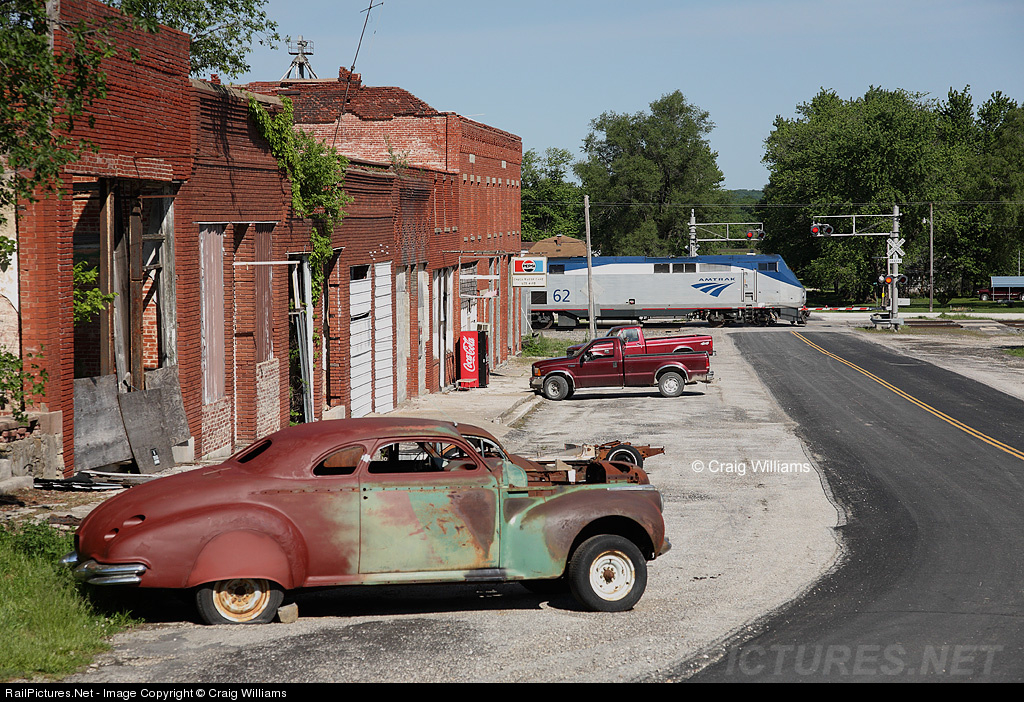 | The Southwest Chief makes good times as they blast thru the small town of Elmer. This small town has the population of only 96, which was pretty quite this Tuesday morning. #4 is only a few minutes from the station stop at La Plata, MO. |