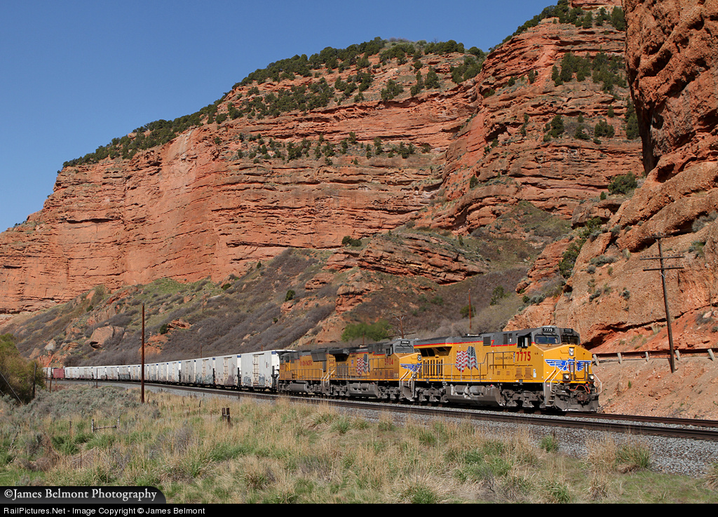 Union Pacific's ZDLSK (Delano-McFarland, CA - Selkirk, NY) heads east along the Evanston Sub through Echo Canyon. The ZDLSK, nicknamed the 'Salad Shooter' moves produce in refrigerated box cars on a priority schedule between California's Central Valley and New York.