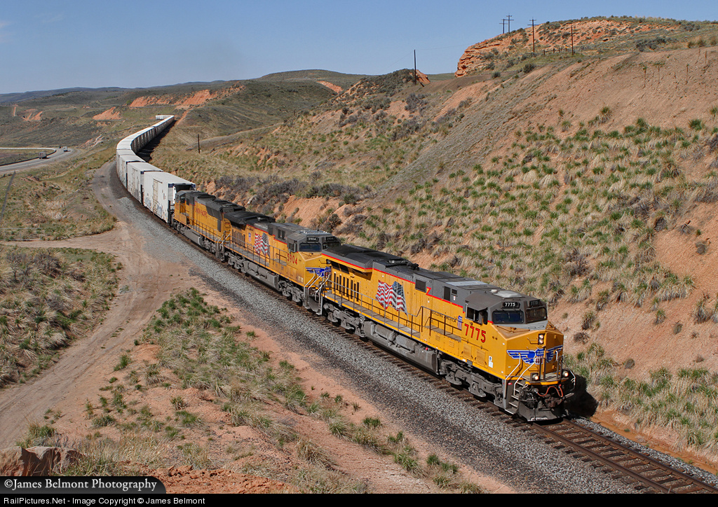 Union Pacific's ZDLSK3-09 (Delano-McFarland, CA - Selkirk, NY) tops 6824 ft. Wahsatch Summit on the Evanston Subdivision. The ZDLSK, nicknamed the 'Salad Shooter' moves produce in refrigerated box cars on a priority schedule between California's Central Valley and New York.