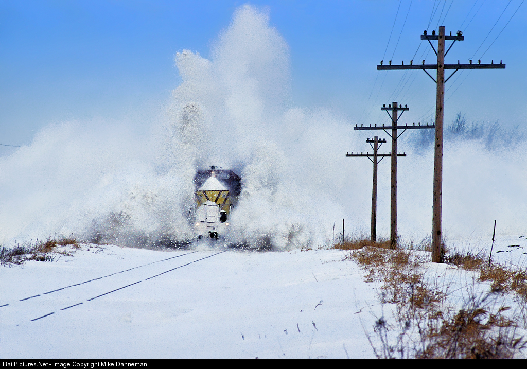 Drift buster Wisconsin Central GP35 No. 4007 and a former C&NW GP7 are busting drifts on the former Fox River Valley line through Rockfield, Wisconsin, after a snowstorm on January 30, 1996. This line was plugged with drifts, and a former C&NW manager now with the WC decided they would open the line with a extra like they used to; get a couple of locomotives, tie the horn down and run like hell through the snow. It worked. They didn’t need no stinkin’ plow! And yes, I did get hit with snow several times.