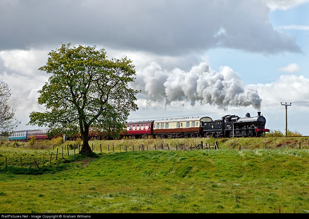| Super D no. 49395 at Burrs on the East Lancashire Railway with a midweek service. Behind the loco is the observation car. I believe that this service was run in conjunction with the LNWR society. |