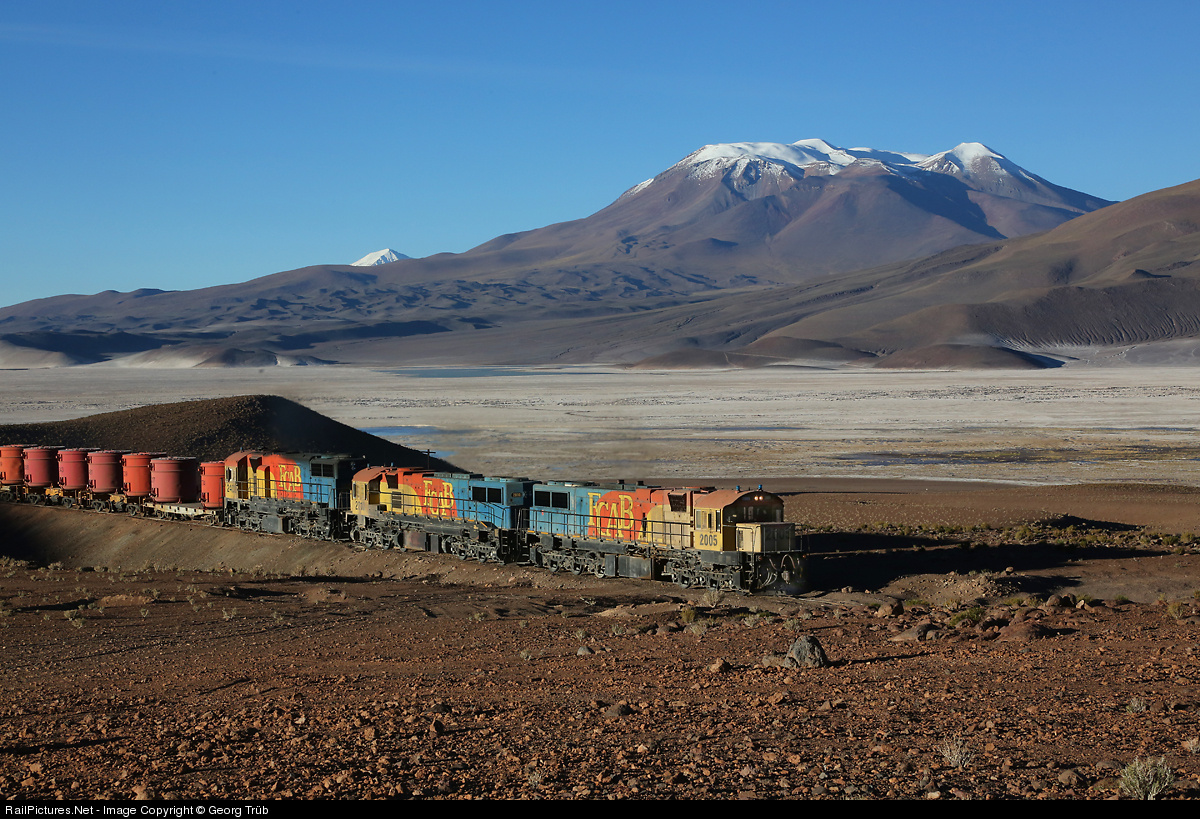 RailPictures.Net Photo: 2005, 2010, 2402 FCAB (Ferrocarril de Antofagasta a Bolivia) GL26C-2, GR12 at Ollagüe, Chile by Georg Trüb