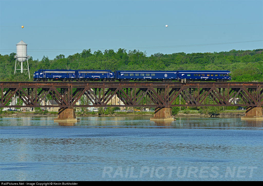 | Pan Am Railways operated an Office Car Special (OCS) trip out of Mechanicville, NY on May 17, departing there at 07:00 and seen crossing the Hudson River Bridge on the Pan Am Freight Main Line with PAR FP9As PAR-1 and PAR-2 leading office cars 100 and 101. For more pictures, please visit http://steelwheelsphotography.com |