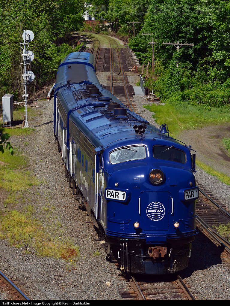 Pan Am's Mechanicville, NY to Ayer, MA office car special (OCS) train is seen approaching East Deerfield Yard, with the PAR-1 and PAR-2 twin FP9As leading the ST 100 and ST 101 office cars. For more pictures, please visit http://steelwheelsphotography.com