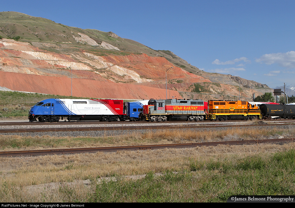 Utah Railway's RUT312 local meets a UTA FrontRunner commuter at Becks.