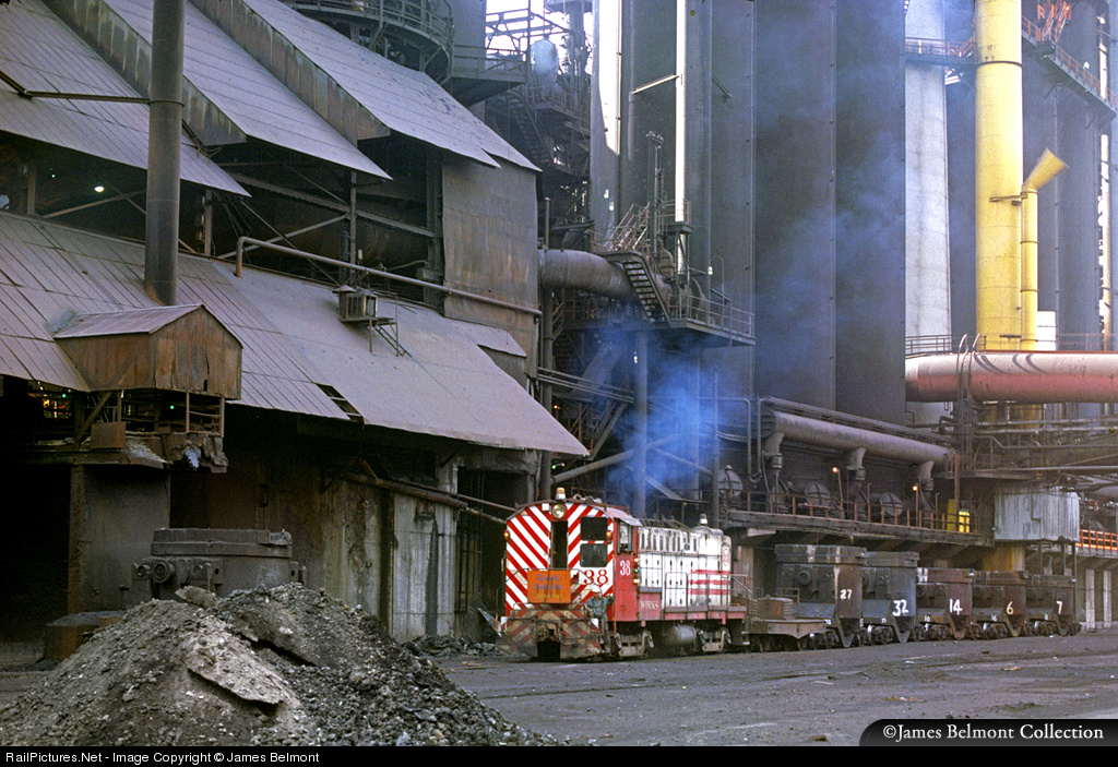 Deep in the shadows of the Geneva Steel mill in Vineyard, Utah, a remote control Baldwin plant switcher goes about its morning duties on a warm July 21, 1977 day.