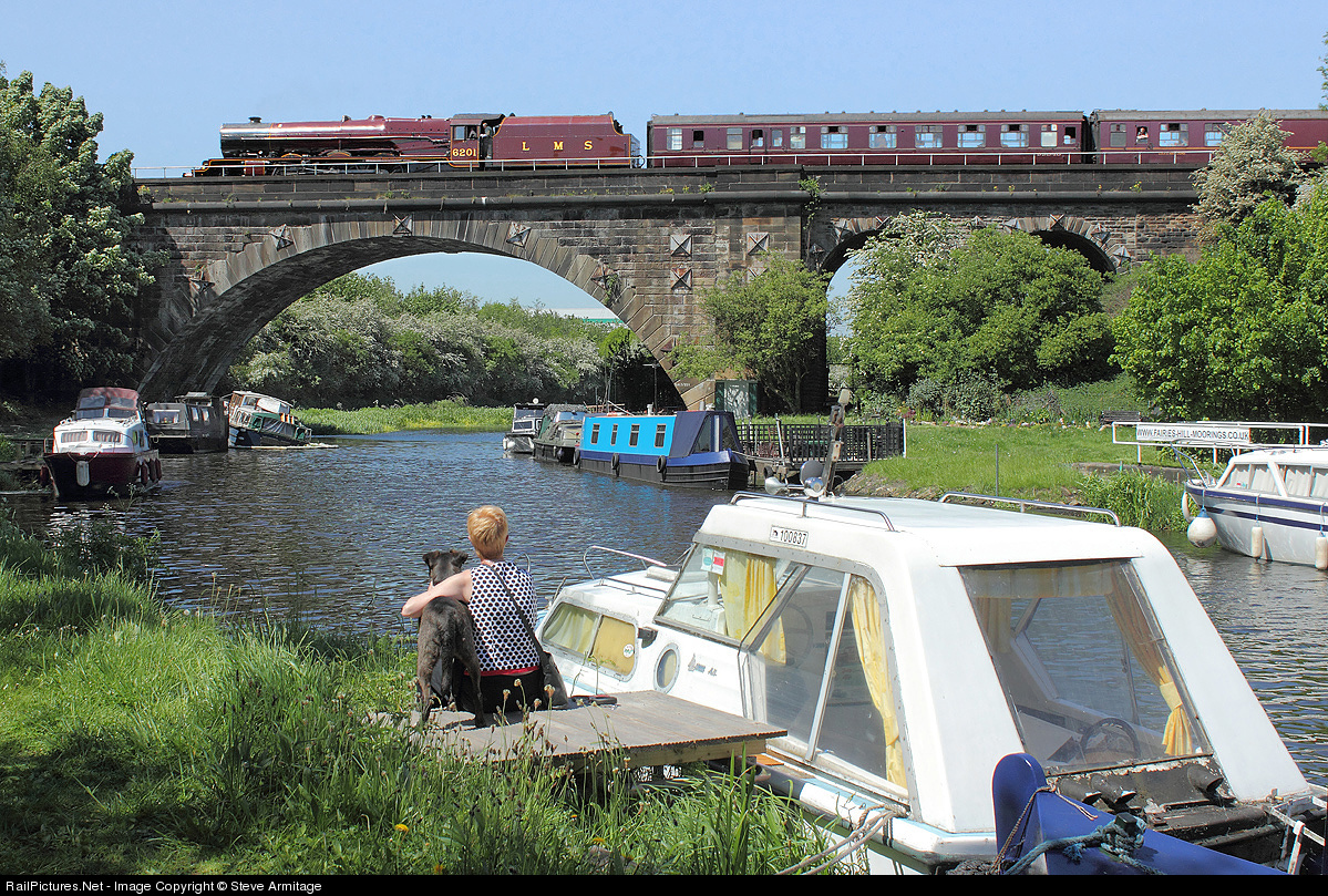 It's a decade or two since steam passed this way. The 'Cathedrals Express' heads west crossing the canal at Woodnook. This is in the one mile section of line between the junctions at Methley (to the right) and Altofts. It's also one of Britain's earliest main lines constructed by the North Midland Railway (later Midland Railway) in 1840 to connect the city of Leeds with London. This area was also the scene of intense rivalry in those early days with Methley Junction playing a key role in allowing other competing railways to access the important commercial centres in Leeds.