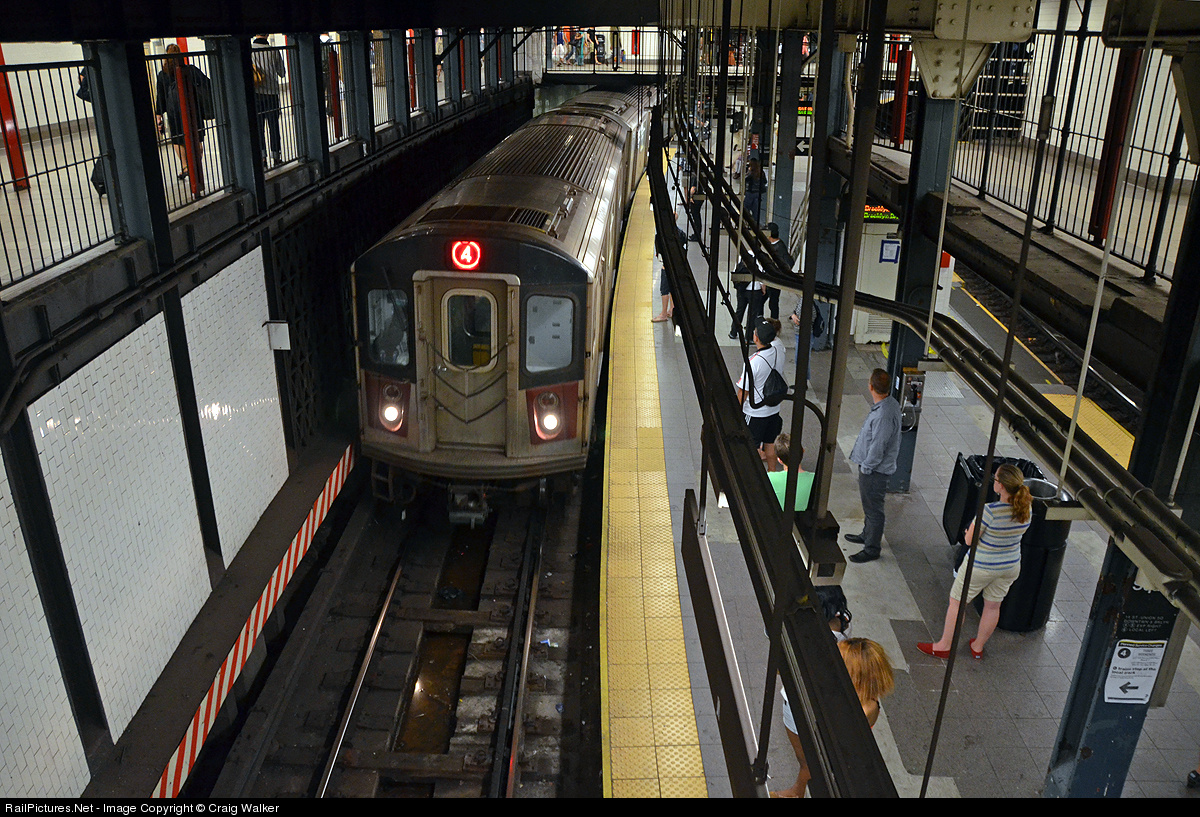 14th Street/Union Square is the New York subway's fourth busiest station, because it is a transfer point for 7 lines (the 4, 5, 6, L, N, Q and R trains). In 2011, almost 35,000,000 riders used this station. A 4 Train (Lexington Avenue Express), made up of R142 cars (built by Bombardier in the early 2000s), comes to a stop on its way north to Woodlawn. This station is a labrynth of stairways, walkways and bridges, and taking the time to stop and watch the various surges of commuters as trains arrive and depart is fascinating in itself.
