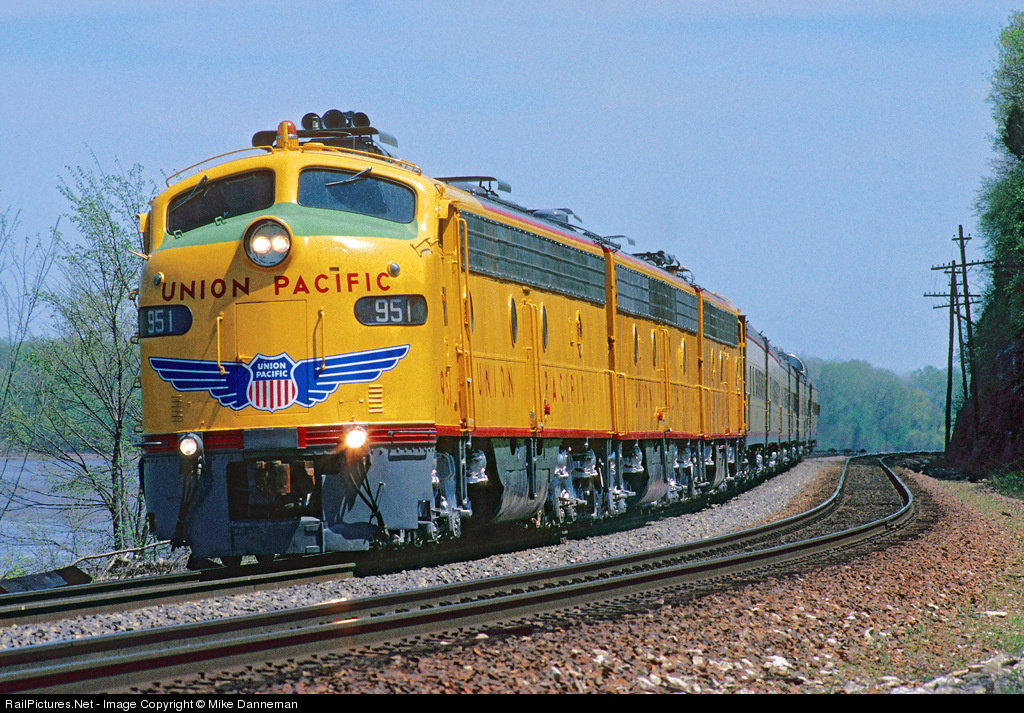 See beautiful diesel locomotives in UP's traditional armour yellow livery and special commemorative paint schemes pulling long trains of yellows cars reminiscent of the days when UP domeliners seemed to go Everywhere West.