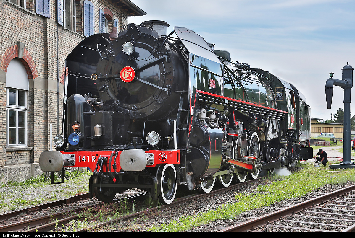| Mikado 141 R 1244 standing beside the shed in Romanshorn, after taking water. In the former depot there is the museum LOCORAMA now. |