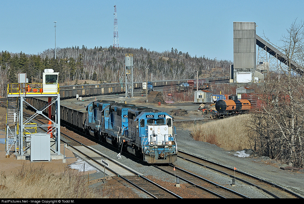 Located on the shores of Lake Superior, Northshore Mining operates a taconite processing facility. After delivering a string of taconite rock loads for the crusher, NSM 655, 656 and 657 prepare to leave the yard with the empties that are available and return them inland 47 miles to the mine at Babbitt, MN to get another string of loads and make the return trip back here to keep the process running 24/7/365.