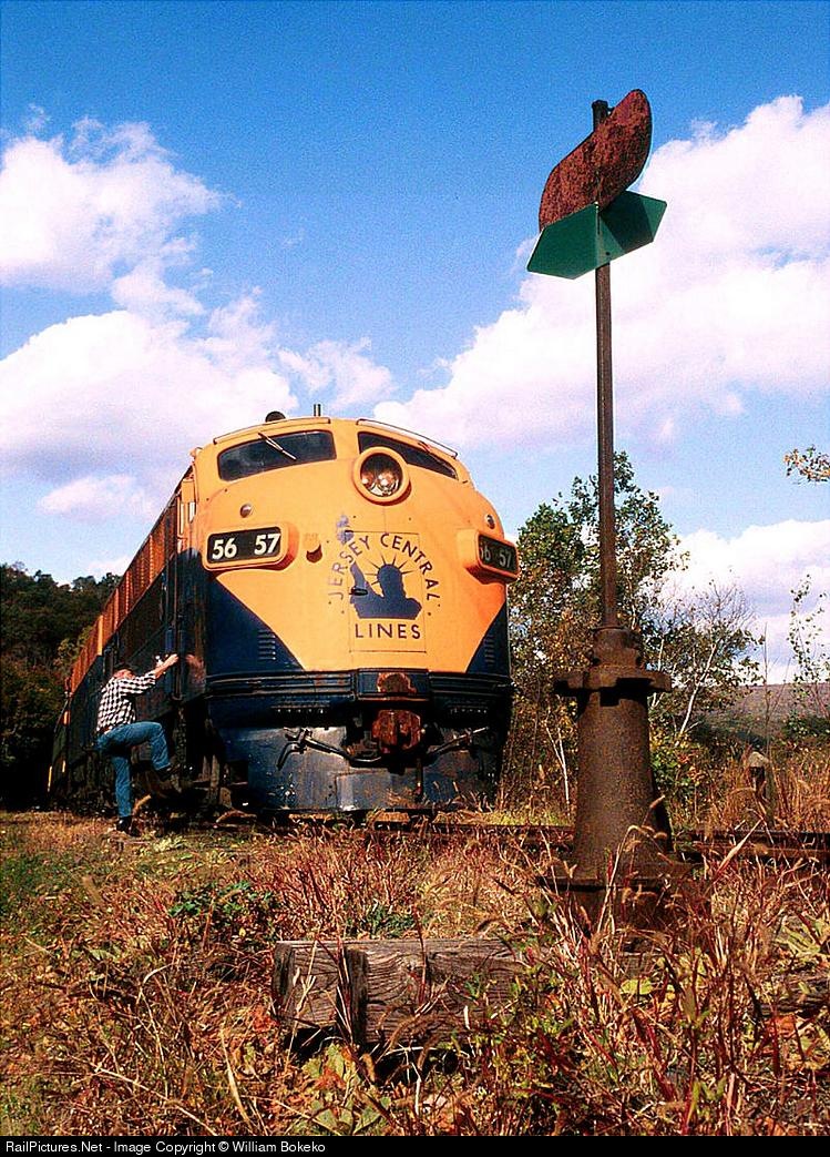 Shortly before of Rail Tours Inc. Fall Foliage excursion to the Hometown trestle, the engineer boards ARHS's CNJ F3 56 at M.P. 1 on the Carbon & Schuylkill RR. CNJ 56 along with Tri-State NRHS CNJ 57,on the east end of the train, powered the return trip.