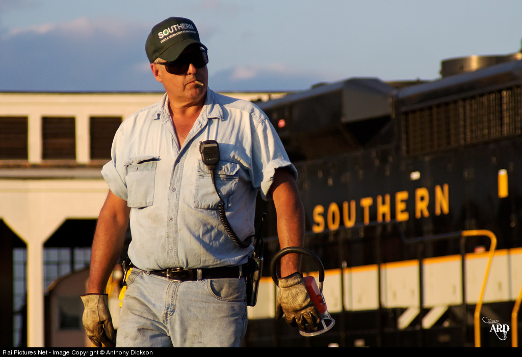 "Southern Pride" The sun rapidly falls from the sky as a Conductor works to tie up.