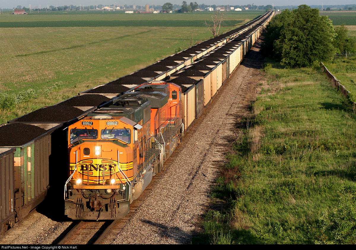 That's a lot of coal! BNSF 8862 arrives at Galesburg, with its eastbound.
