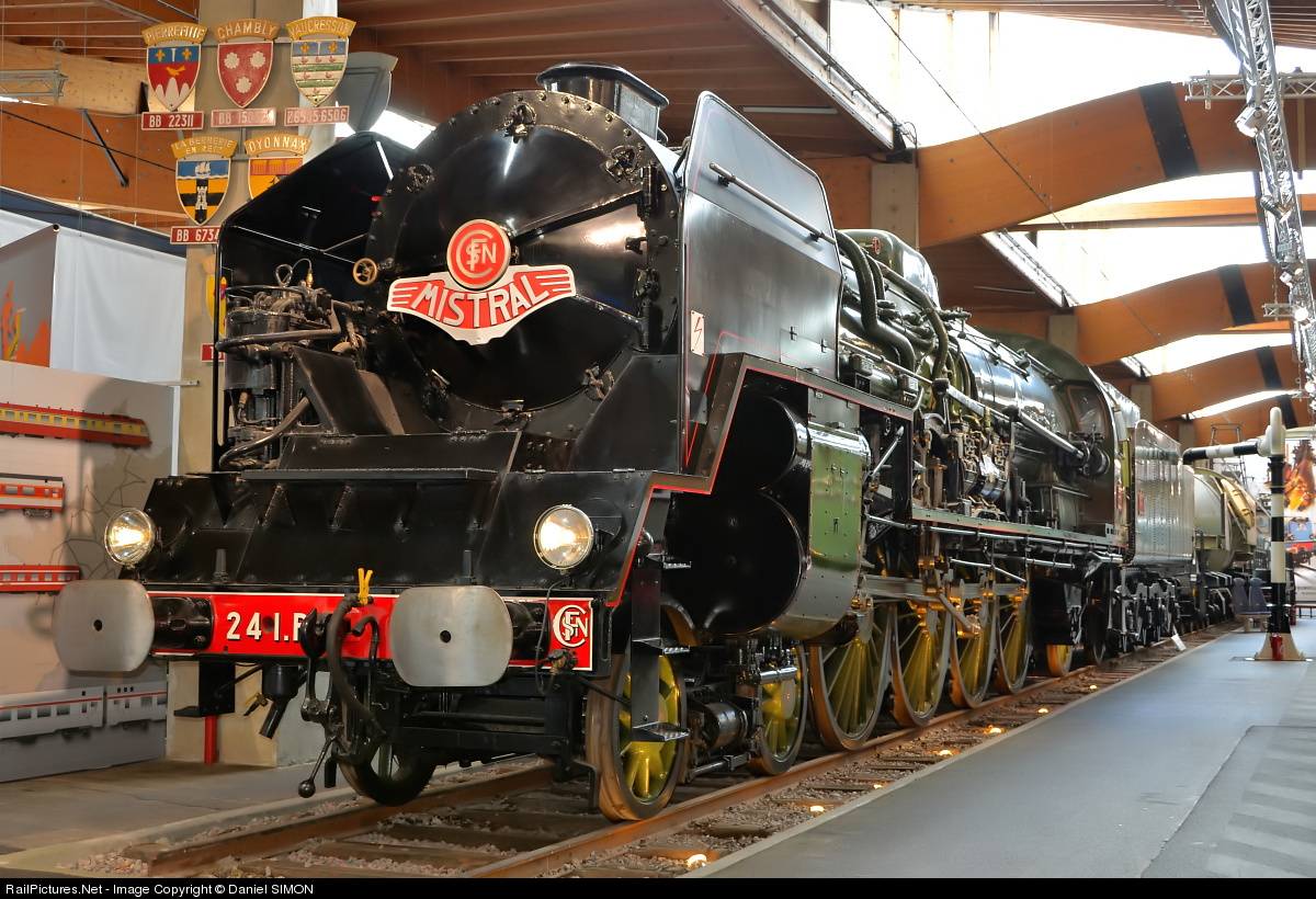 The 241 P class was initially assigned to the line between Paris and Marseilles, hauling services including the famous Le Mistral expresses, but within a few years they were displaced by electrification. Most of the class was then transferred to the Nord, l'Est and l'Ouest regions. For over ten years they managed the traffic on the line west of Le Mans, including the 411 km (255.4 mi) line to Brest and 410 km (254.8 mi) line to Quimper. They hauled trains of up to 16 coaches, weighing over 800 tons. The 241P-16 has been withdrawn from active service in 1973 and is now on display at the Cité du Train in Mulhouse.