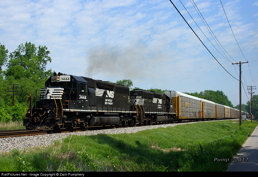 A long string of autoracks bound for BNSF Argentine Yard rolls past BNSF Birmingham Yard behind a pair of SD40 family EMDs. The leader is Ex-PRR 6056, later rebuilt to Dash-2 specs, while the 2nd unit is Ex-CR 6399, originally built as a SD40-2, a real pair of treats for KC.