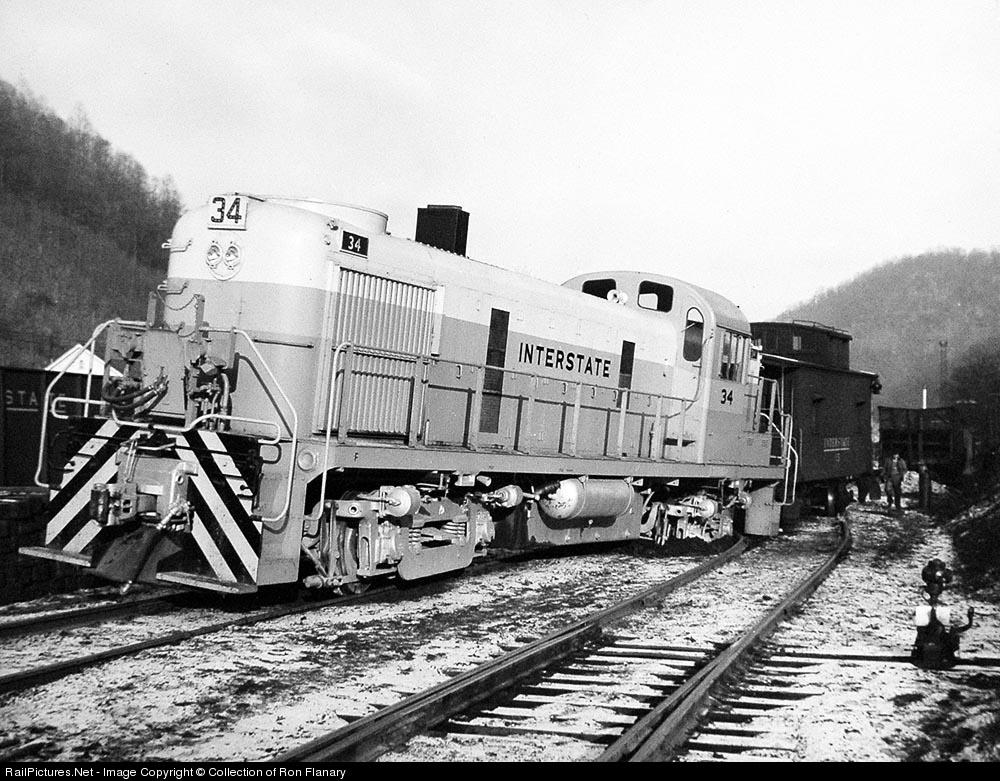 Brand new Interstate RS-3 number 34 has split a switch in the east end of the yard at Andover on January 7, 1954. It would appear the lead wheel on the trailing truck picked the point. The orange, cream, gray and silver unit hasn't been in service long enough to collect much road grime or coal dust. This photo was taken by the late H.L. Stuart, Jr.