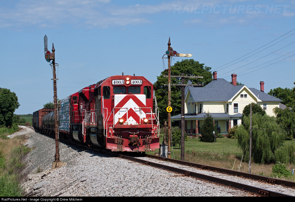 INRD 4003 leads a manifest southbound through the classic Monon semphores at Hitchcock, IN 6/27/09. This would be one of the INRD's final runs between Hiawatha Yard in Jasonville,IN and Lousiville,KY, as the traffic ended up getting diverted to the L&I.