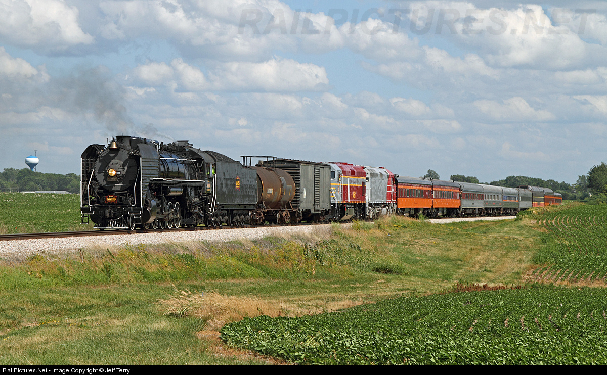 On June 19th, the NRHS ran a special train from Cedar Rapids, Iowa to Rock Island, Illinois and return as part of the 2012 NRHS convention. Between Homestead and Rock Island, steam power pulled the train. Here's the consist (a real "dog's breakfast" with a tank car, tool car, Iowa Northern F40s, and an assortment of passenger cars) steaming through West Liberty. The train was restricted to 25 mph because the heat.